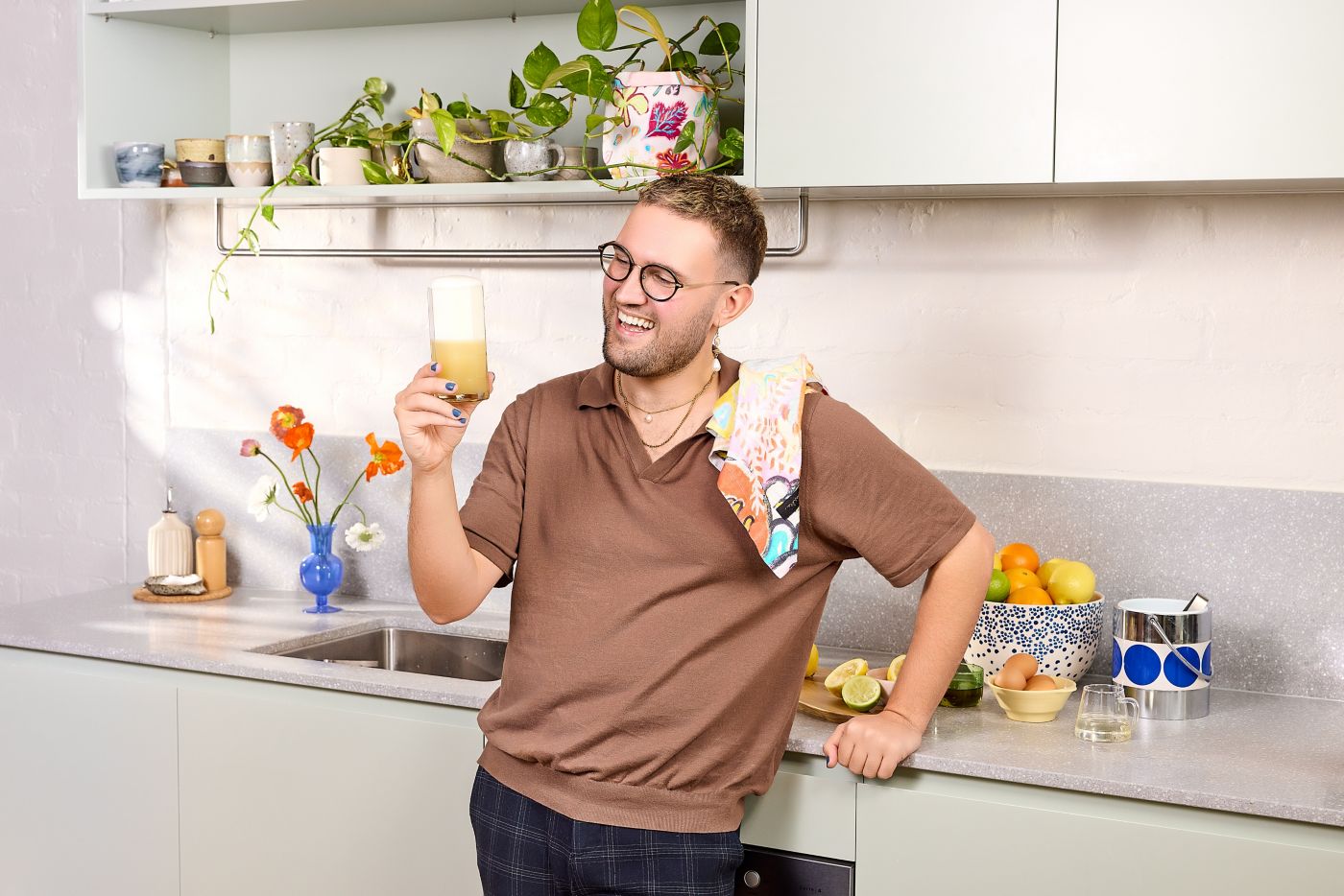 You can never have too much of a good thing, or at least that’s what we believe here at Dan’s Daily. That’s why we’re back at it again with one of our faves, Melbourne’s Conor Curran, to collab on another delicious cocktail recipe. This time on the sparkly, fizzy whisky number he’s affectionately named the Morning Glory Fizz. If the name Conor Curran isn’t ringing any bells, let us jog your memory. He was in the 13th series of Australia’s MasterChef and is a recurring guest star, mixing up all kinds of wonderful cocktails on our Instagram (like this banger of a cocktail, the Vintage Coco). “I think I am a recipe developer first, then content creator and then media personality – the modern-day triple threat.” As you can probably tell, Conor’s got his hands full most days, but when he does get some time to himself, what’s on the schedule? “Probably a late pub lunch with my partner Chris down at the Park Hotel in Abbotsford,” says Conor. “I’ll have a cheeky parma and a beer before getting home to watch my beloved North Melbourne Roos lose another game.” Back to our clever cocktail, the Morning Glory Fizz. Made from Canadian whisky, lime and lemon juice, absinthe, egg whites and soda water, this pretty little number is quite the show-stopper. “I love the theatre of a Fizz,” says Conor. “That absurd amount of creamy, airy top is equally ridiculous and beautiful… It’s the Aimee Gibbs [Sex Education] of the cocktail family; like her, it’s sparkling and fun and just so effortless.” To taste, expect some refreshing sourness from the lemon and lime juice, very light whisky undertones, some subtle licorice flavours from the absinthe and a great big foamy top. “Serve this drink at the start of the night for sure,” Conor explains. “This is definitely like a visual party starter of a beverage.”