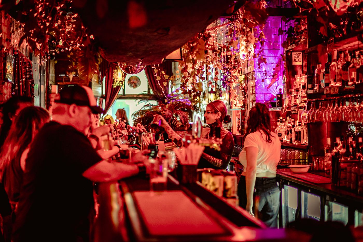 The staff will happily whip up any mixed drink you like – fear not, Dirty Martini devotees – but if you’re here, you’ve got to order one of the original cocktails. Try the Queen of the Harpies, an alcoholic take on cherry cola, or the snowcone-esque Frostbite, a towering tropical concoction made with white rum, yuzu citrus, lychee, passionfruit, shaved blue ice and house strawberry syrup, complete with tiny umbrella, fluorescent maraschino cherry and flamingo swizzle stick.