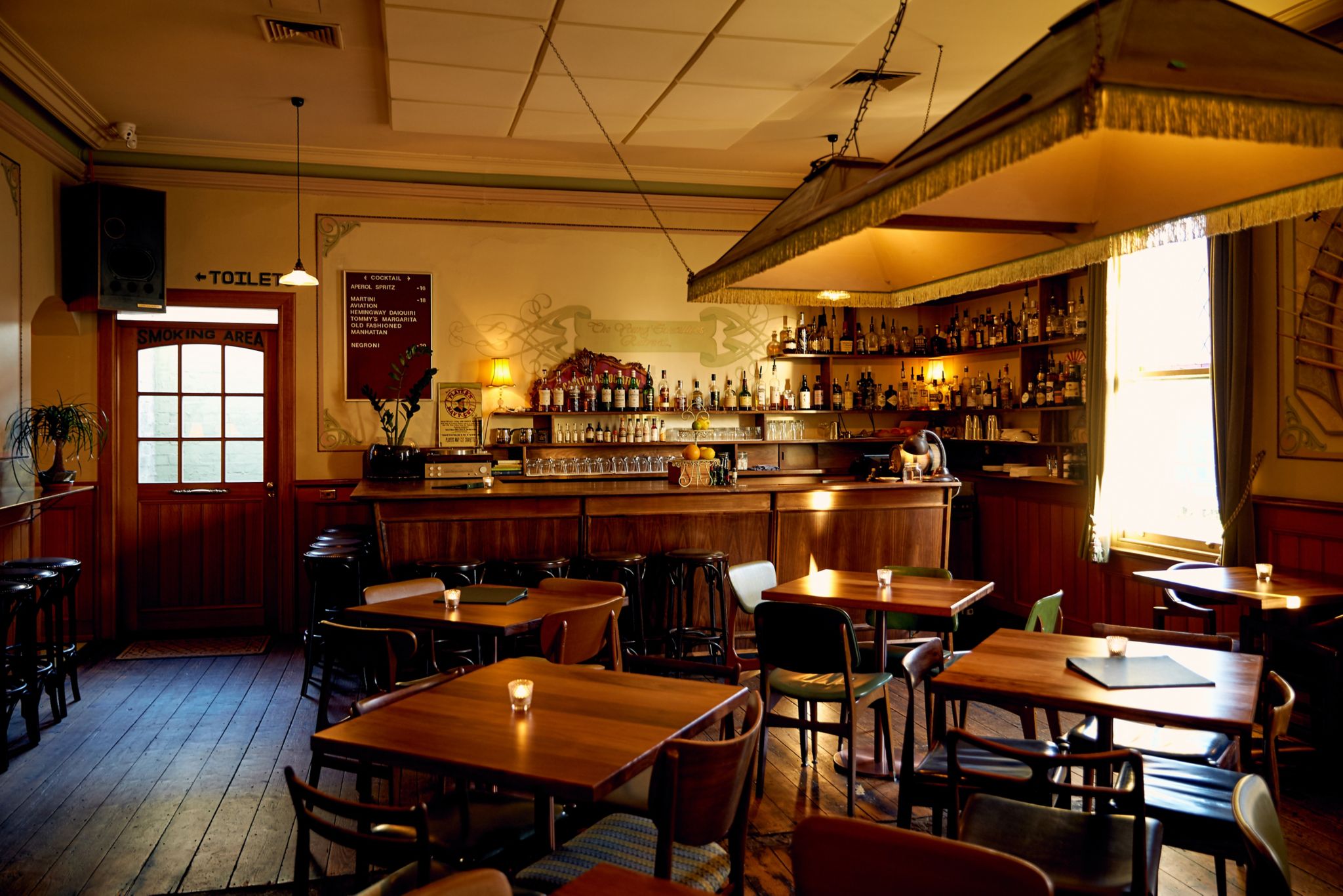 The best seat in the house is at the corner of the bar where you can survey all the theatre of the bar, kitchen and dining rooms. “It’s almost the helm of the ship,” says Denman.
