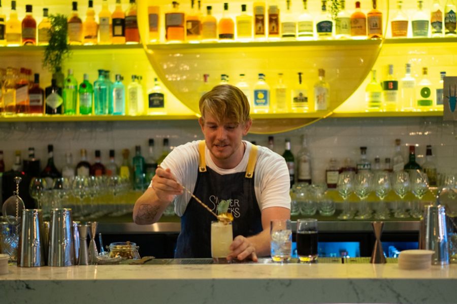 A recent addition to the bar’s line-up is Robbo’s latest creation, the Ancient Lands Kakadu Plum Gin, showcased in the Ancient Lands Kakadu Plum Dry Martini. It sits alongside the first gin he created, Troppo, featuring local Kensington Pride mangoes, organic lime and ruby grapefruit, local lemongrass, kaffir lime and rosella. A tireless experimenter, Robbo has even been known to make his own tonic water.