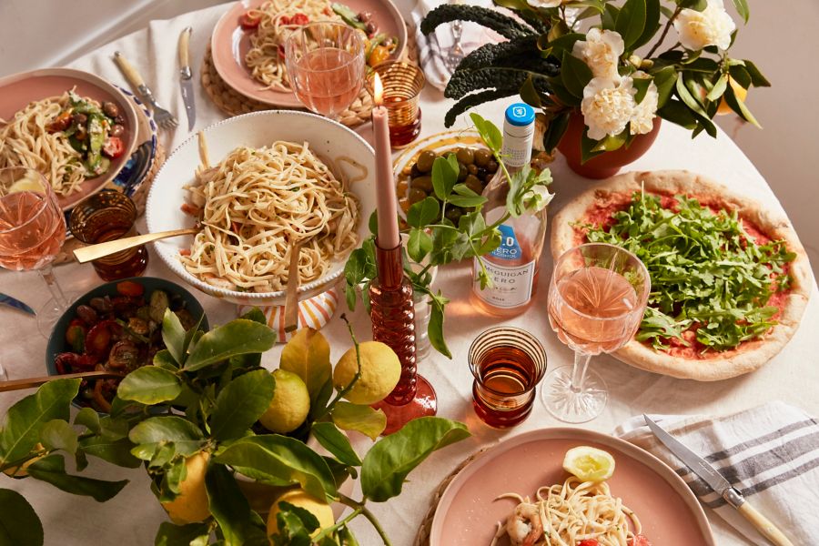 Now that your guests are living la dolce vita, it's time to progress through a delicious Italian feast. “Italian is all about plentiful food,” says Tori. “Either DIY pizza or really yummy pasta. There are a lot of great recipes out there, whether you're looking on Tik-Tok or following someone like @juliaostro on Instagram. A simple pesto or seafood works well, or you could be cheeky and make a vodka pasta, with the alcohol burning away during cooking.”