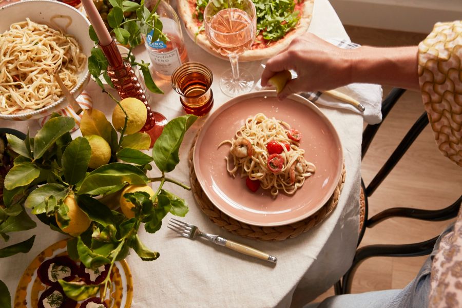 Now that your food menu and drinks are organised, you can concentrate on making the dinner table a truly inviting place to be.”If you've gone with the Italian theme, keep things really rustic and ambient,” says Tori. And of course, generously sized pasta bowls are non-negotiable.