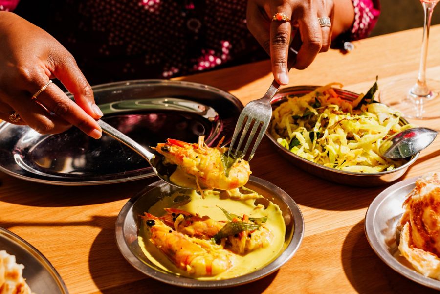 And so, Keralan drinks and food found their new home, and it’s clearly a labour of love. “Keralan food is the result of its environment,” Mischa explains. “It’s a tropical place with the ocean on one side, mountains on the other, and rivers and backwaters. It has a history of the spice trade, so the cuisine is spicy, and there’s ingredients like cloves, cardamom and turmeric, and a heavy use of seafood and roasted coconut.”