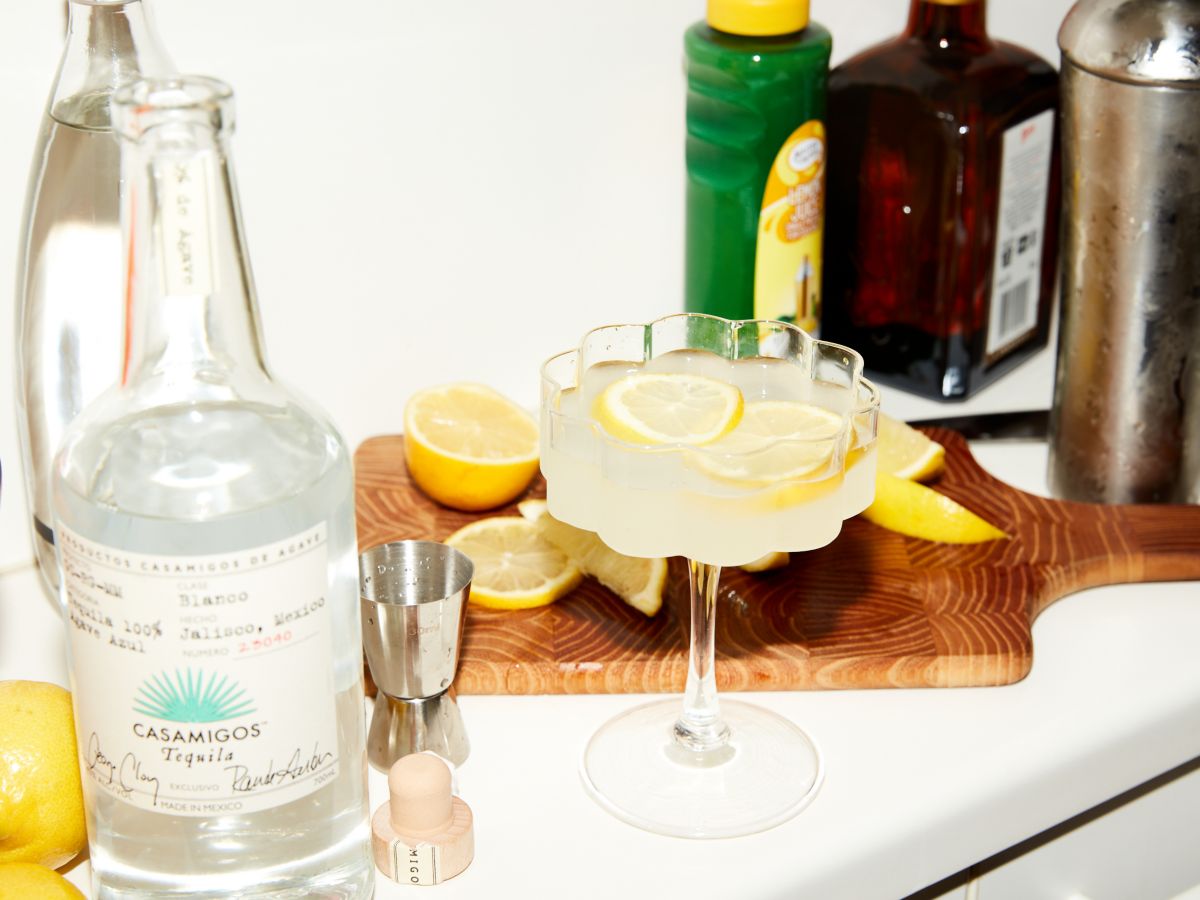 “I drink tequila, but I actually don't like lime. I know it's weird, but it's normally tequila, Cointreau, lots of lemon, and then a little bit of mint. Sometimes I'll make a Strawberry Lemon Margarita, which is just muddled strawberry, lemon juice, mint, tequila, and cointreau shaken up. Casamigos Blanco Tequila is my pick. George Clooney. I love him.”