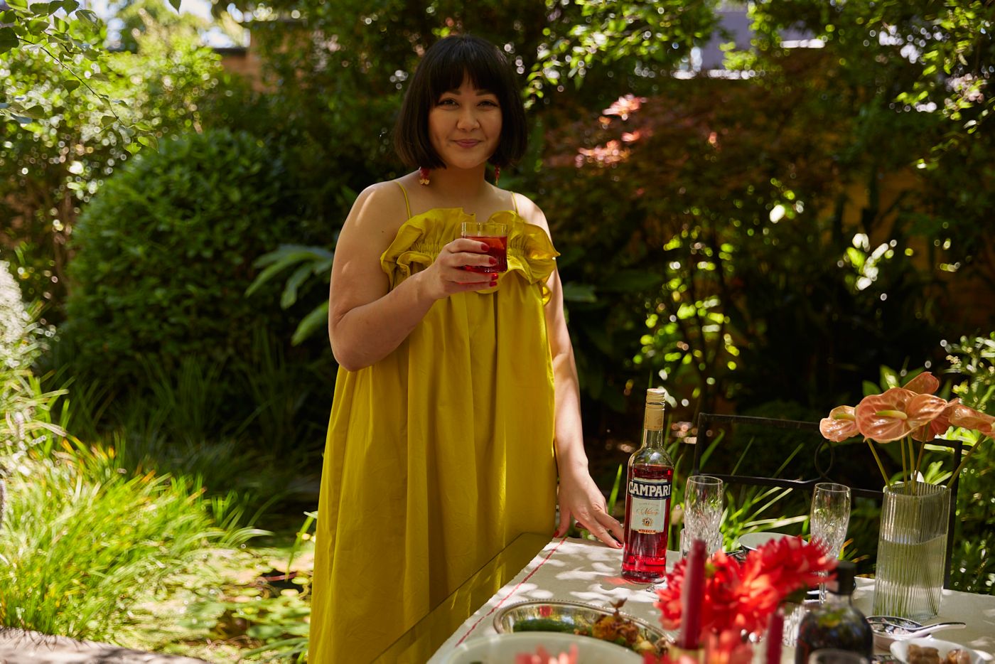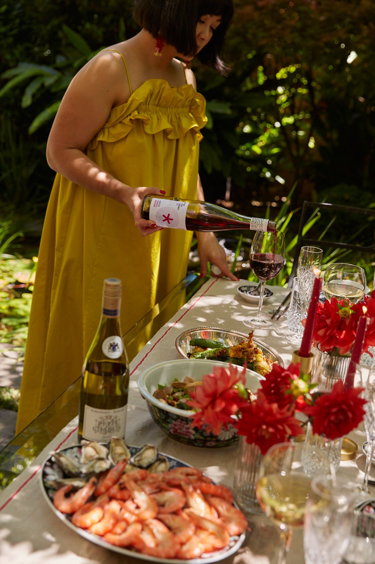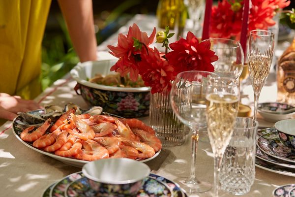 I love beautiful crystal glassware and picking from my mum’s antique Chinese crockery. We generally eat in the garden so we’re already surrounded by lush nature, but lots of cut flowers in small vases or glasses are a beautiful way to fill a table.