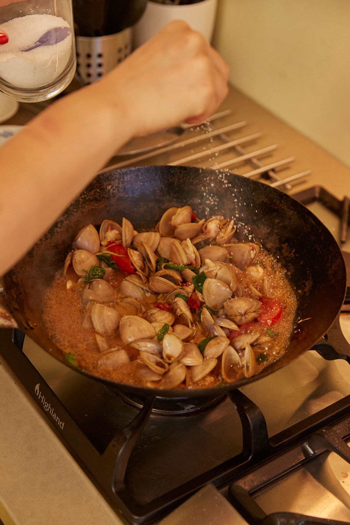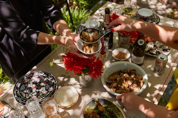 We’ll have a huge platter of Taiwanese-style beer house clams stir-fried with Thai basil with steamed rice. It’s so fun, interactive and delicious. We’ll be dining al fresco in the garden.