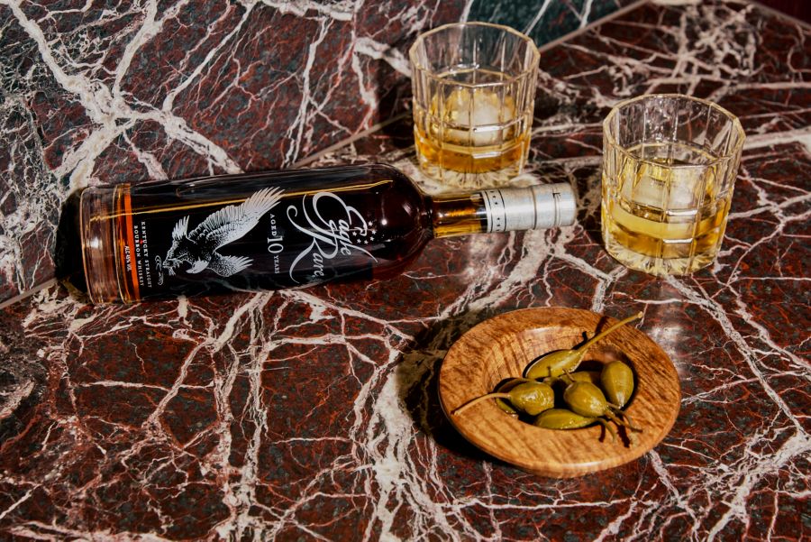 Eagle Rare is known for its dry finish that lingers, so sip it neat and really savour its flavours. Serve it alongside a cheeseboard that goes hard on flavour – aged cheddar for its sharpness, aged gouda for its caramel and smoky notes, and a good ol’ parm for salt and texture.