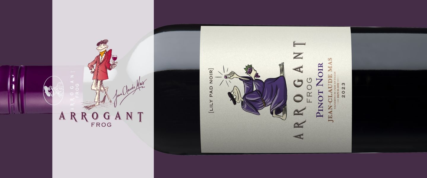 Arrogant Frog is a wine that proudly embraces its Mediterranean origins yet leaps out of the glass with a friendly and inviting New World attitude. To obtain the fruit-driven and unique style that defines Arrogant Frog, its creator Jean-Claude Mas (the “Humble Winemaker”) harvests grapes coming from the hillsides of the five main valleys of the Languedoc region: the Aude, Orb, Hérault, Peyne and Uzès valley.