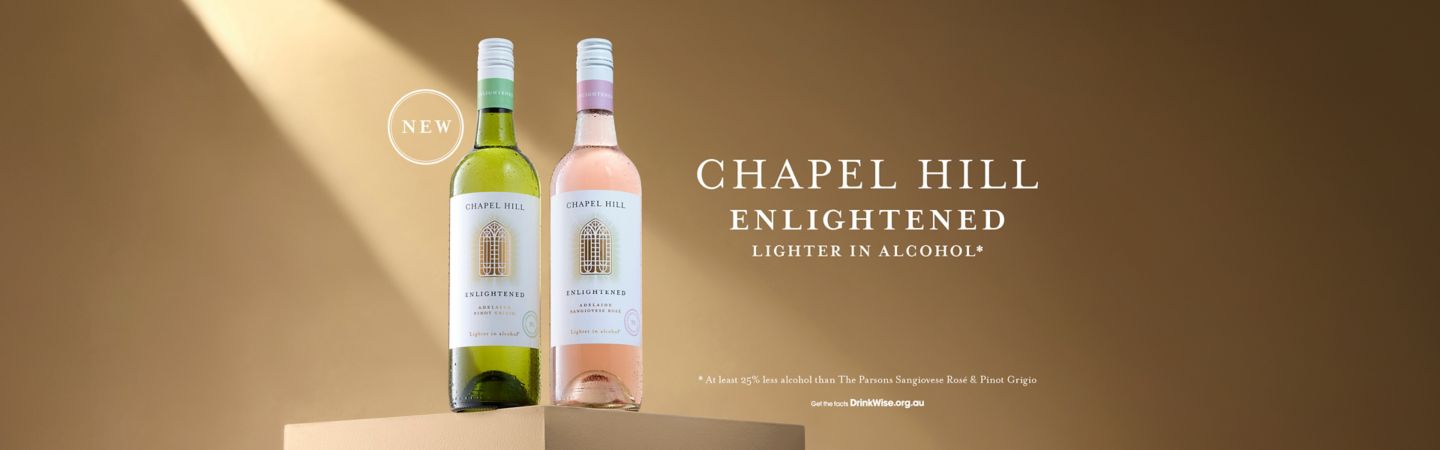 Chapel Hill Enlightened range offers a selection of wines with a lighter alcohol content, inviting you to experience the balance and purity that define every bottle of Chapel Hill.