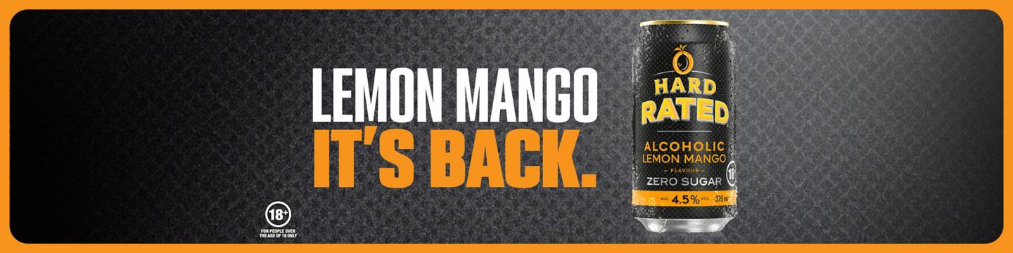 Hard Rated is now packed with refreshing Lemon & Mango flavour. Enjoy the full sweetness taste, without the sugar.
