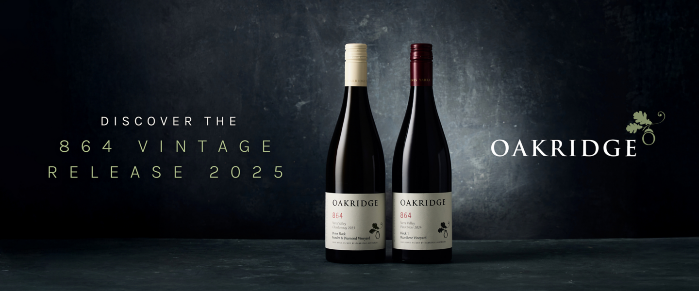 This year’s highly anticipated 864 release unveils two exceptional wines from the standout 2023 and 2024 vintages - the 2023 864 Funder & Diamond Drive Block Chardonnay and the 2024 864 Hazeldene Block 1 Pinot Noir. Sitting at the pinnacle of the Oakridge portfolio, the 864 collection showcases hand-picked micro-selections from Oakridge’s most exceptional Yarra Valley vineyard sites. Released only in the finest vintages, these wines capture the purest expression of Oakridge winemaking - precise, expressive and uncompromising in quality.