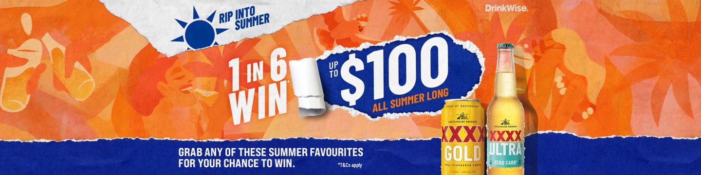 Rip into Summer, 1 in 6 wins up to $100 digital Mastercard instantly in every specially marked case of XXXX, Hahn or Tooheys. Offer ends 28/2/26. See Base of carton to enter *T&C's apply.